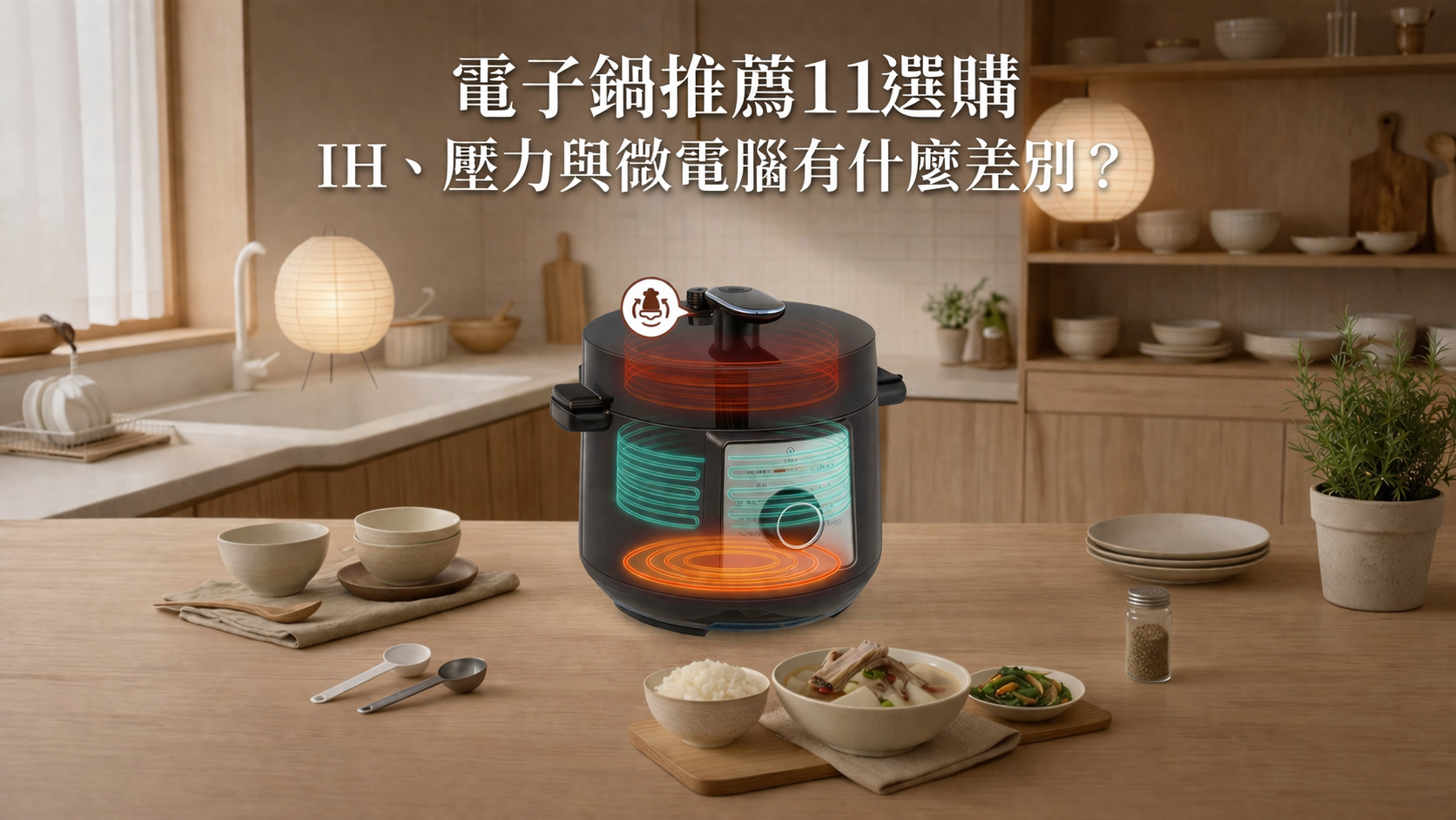 選電子鍋不難,但選對的電子鍋,需要先搞清楚三種核心加熱技術的差異。市面上的電子鍋主要分為微電腦、IH 感應加熱、壓力 IH 三大類,從幾百元到上萬元都有,價差的關鍵就藏在這些技術裡。一、電子鍋選購指南:IH、壓力與微電腦有什麼差別?微電腦電子鍋:小資族與租屋首選微電腦電子鍋採用底部電熱盤直接加熱的方式,是市場上歷史最久、技術最成熟的設計。它的運作原理單純:加熱盤通電後產生高溫,透過接觸內鍋底部將熱能傳導進去,再由微電腦晶片控制溫度與時間。適合對象:租屋族、學生、單身或雙人小家庭預算有限、料理需求以基本白米飯或其他簡單料理為主不想花太多時間研究功能的使用者微電腦 vs IH 電子鍋關鍵差異對照:比較項目微電腦電子鍋IH 電子鍋加熱方式底部電熱盤接觸加熱電磁感應,內鍋整體發熱加熱均勻度較低,底部溫度最高高,360° 立體均勻受熱米飯口感標準、適中粒粒分明、口感較佳價格區間NT$800–3,000NT$3,000–12,000耗電量較低略高維修難易度容易、零件便宜較複雜雖然微電腦加熱均勻度不如 IH,但對日常簡單料理來說已經完全足夠。加上體積輕巧,對租屋族來說是非常務實的選擇。IH 電子鍋:追求米飯口感的選擇IH(Induction Heating,電磁感應加熱)電子鍋的核心技術,是在鍋底裝設線圈,通電後產生交變磁場,讓整個內鍋本身成為發熱體,而非靠外部熱源傳導。這個設計帶來兩個決定性優勢:加熱更均勻:熱能從鍋底、側面甚至鍋蓋同步產生,米粒受熱一致,煮出來的飯粒粒飽滿、不容易有半生不熟的角落。溫控更精準:感應加熱響應速度快,可以執行更細膩的「炊飯曲線」——模擬傳統灶火「大火催沸、小火慢燜」的節奏。IH 電子鍋特別適合:對米飯口感有要求的族群(吃越光米、越後米等日本米品種)願意投資中高階廚具的中產家庭日系品牌如 Panasonic(松下)、ZOJIRUSHI(象印)、TIGER(虎牌)、MITSUBISHI(三菱)的 IH 機種,在台灣與日本市場均有穩定的長銷口碑,是這個級距的代表性例子。壓力 IH 電子鍋:縮短時間、讓糙米變軟 Q 的神機壓力 IH 電子鍋在 IH 加熱技術基礎上,進一步加入密封加壓設計,讓鍋內沸點從 100°C 提升至約 105–110°C,同時縮短烹煮時間、強制水分滲透米粒芯部。壓力 IH 的三大核心優勢:糙米、雜穀米變軟 Q:高壓環境下,粗纖維較多的糙米(Brown Rice)、十六穀米也能煮得像白米一樣軟糯,解決傳統電子鍋煮糙米口感偏硬的問題。縮短炊飯時間:比一般 IH 機種快 10–20 分鐘,適合早上趕時間的族群。提升澱粉糊化程度:高溫高壓讓米粒澱粉更完全糊化,甜度與黏性提升明顯。壓力 IH 選購注意事項:壓力閥、密封圈屬於消耗品,需定期檢查更換(一般建議每 2–3 年)開蓋前必須等待洩壓,操作步驟比一般機種多整機重量較重,約 5–7 公斤,搬移較不方便三種機型快速比較:機型加熱方式米飯口感糙米表現料理速度建議售價微電腦電熱盤★★★☆☆★★☆☆☆標準NT$800–3,000IH電磁感應★★★★☆★★★☆☆標準NT$3,000–12,000壓力 IH電磁感應+加壓★★★★★★★★★★快 10–20 分鐘NT$8,000–25,000二、5 個細節教你挑選最適合的電子鍋容量計算:從單身到 6 人家庭的配置電子鍋容量以「人份(合)」標示,台灣常見規格為 3 人份(0.54L)、5.5 人份(1L)、10 人份(1.8L)。近年也有越來越多品牌推出 3.4 公升的大容量機型,主打一次烹煮、多餐備用的使用需求,特別受到健身備餐族與大家庭的青睞。容量選購建議:家庭人數建議容量說明1–2 人3 人份(0.54L)輕巧、省電,煮少量也不浪費3–4 人5.5 人份(1L)台灣最主流規格,兼顧日常與備用4–6 人3.4 公升大容量介於家庭與備餐之間的最佳平衡點,一次煮好幾餐份量、不需反覆開火5–6 人8–10 人份(1.8L)大家庭或常備隔夜飯首選辦公室 / 備餐族10 人份以上一次煮大量,搭配保溫功能使用有一個常見的誤區需要特別說明:不建議用小鍋煮超大量的飯。內鍋水位超過最高刻度,加壓機型有安全疑慮。反過來,大鍋煮少量雖然浪費電,但一般不影響煮飯品質。內鍋材質解析:球釜、炭炊釜、不鏽鋼哪個好?內鍋材質直接影響熱傳導效率、塗層壽命與米飯口感,是選購時容易被忽略但非常關鍵的細節。常見內鍋材質比較:材質名稱代表品牌用語特色耐用度清潔難易鋁合金(厚釜)多品牌通用導熱快、價格親民★★★☆☆容易球釜(多層鋼板)Panasonic 等球狀結構增加米飯翻騰動作★★★★☆容易炭炊釜TIGER 虎牌遠紅外線輻射效果,米飯甜味提升★★★★☆容易土鍋釜 / 土鍋塗層象印、三菱模擬土鍋蓄熱,口感厚實★★★☆☆需小心厚釜內鍋部分台灣與韓系品牌不含塗層、耐刮耐腐蝕★★★★★容易關於不鏽鋼內鍋: 近年健康意識抬頭,不鏽鋼內鍋因為「完全無塗層」而受到關注。它的優點是不怕金屬刮傷、可長期使用,缺點是導熱稍差,煮出來的米飯黏性與光澤感略遜於日本原廠塗層鍋。2026 必備功能:減醣、預約、一鍵清洗現代電子鍋的附加功能已遠超「煮飯」本身,以下是 2026 年選購時值得重點確認的功能項目:1.減醣炊飯功能透過在炊飯過程中排出含醣分的米湯,宣稱可降低米飯中約 40–50% 的醣類含量。適合有控糖需求的族群,如糖尿病患者、低醣飲食(Low-carb Diet)實踐者。目前 Panasonic SR-JX系列、TIGER JX 系列均有此功能。2.預約炊飯可設定最多 24 小時前預約煮飯時間,起床或下班就有熱飯可吃。使用前需注意:浸泡過