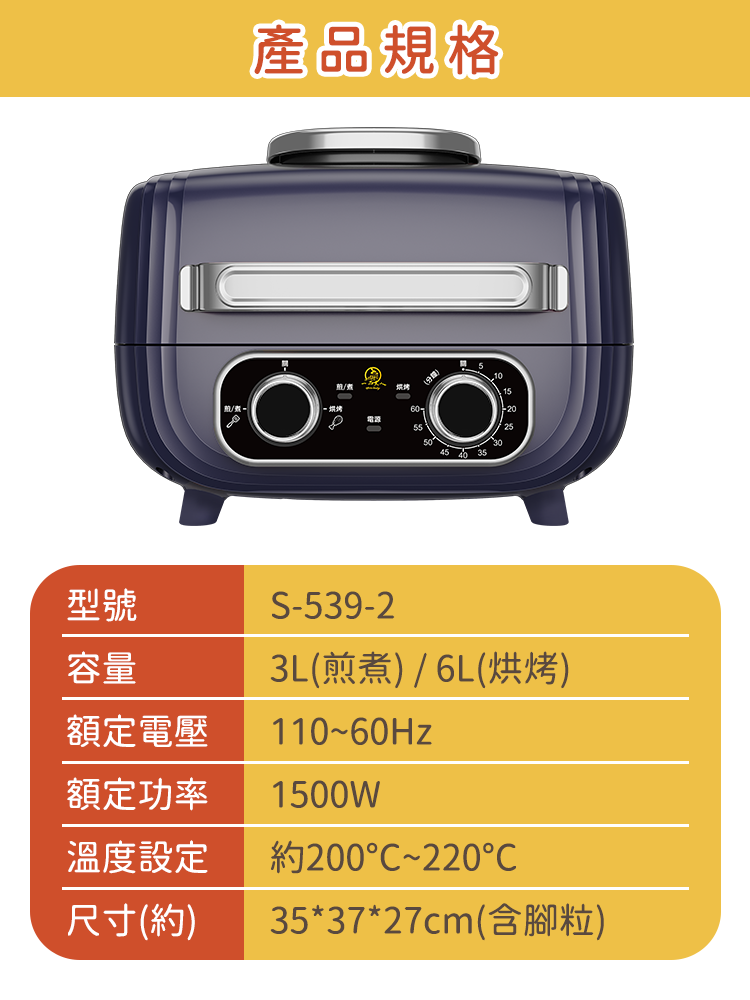 ●容量:3L(煎煮)/6L(烘烤)