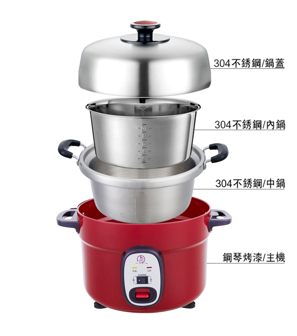 ●安全看的見,中鍋、內鍋採用#304不鏽鋼材質